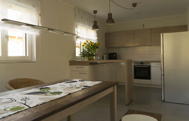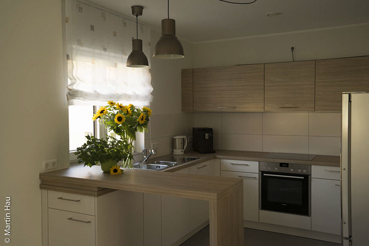 Wenn Sie gerne kochen, wird dies in unserer erstklassig ausgestatteten Wohnküche zum Vergnügen. So können Sie Ihren Tag mit einem zauberhaftes Frühstück und Kaffee aus dem Kaffeeautomaten beginnen, sowie nach Herzenslust regionale Spezialitäten auf dem Herd mit Ceranfeld zubereiten oder abends gemeinsam eine Pizza backen. Gut, dass dann eine Spülmaschine den Abwasch erledigt.