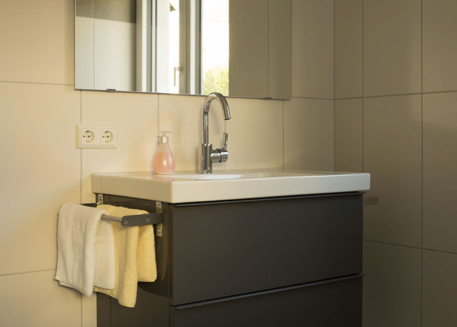 Ihnen stehen zwei großzügige, freundliche Bäder zur Verfügung, sowie ein separates Gäste-WC im Wohnbereich. Auch im Badezimmer muss nicht auf Wellness verzichtet werden.