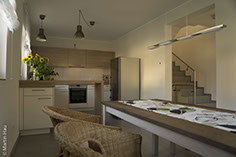 Wenn Sie gerne kochen, wird dies in unserer erstklassig ausgestatteten Wohnküche zum Vergnügen. So können Sie Ihren Tag mit einem zauberhaftes Frühstück und Kaffee aus dem Kaffeeautomaten beginnen, sowie nach Herzenslust regionale Spezialitäten auf dem Herd mit Ceranfeld zubereiten oder abends gemeinsam eine Pizza backen. Gut, dass dann eine Spülmaschine den Abwasch erledigt.